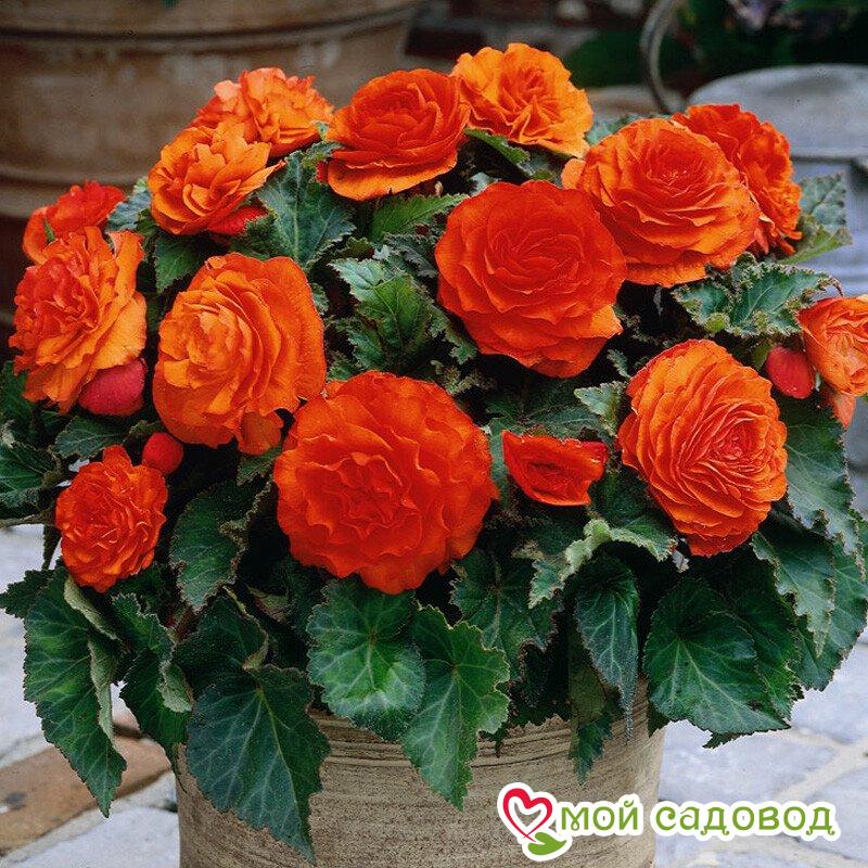 Бегония Дабл Оранж неповторимая представительница рода бегоний высотой от 20 до 25 см. Бутоны пышные, многослойные, розовидные. Окрашены в пламенно-оранжевые оттенки. Цветение длительное – со второй половины лета до поздней осени.